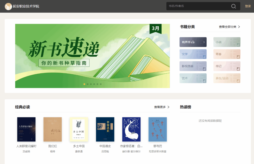 2.扫描下方二维码进入延安职业技术学院图书馆,点击我的—>登录,即可直接阅读。